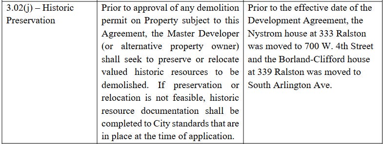 Getting real about history means getting real about historic preservation, too. Under that section in the Jacobs Development Agreement report, we see these lines:
